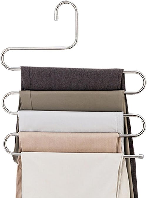 Hang up to five pairs of pants on these S-shaped pants hangers that help maximize closet space. If your dresser drawers are jam-packed and every pair you pull out is so creased, it’s unwearable, these clever hangers are a game-changer. They’re made from sturdy stainless steel to prevent bending and feature nonslip plugs at the end so pants don’t slide off.