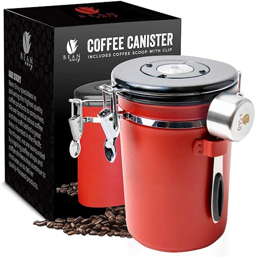 This 22.5-ounce coffee canister will make sure your beans stay fresh until you’re ready to use them. It has a designated space for you to log the purchase or expiration date so you know exactly when you need to use it by. The layered stainless steel and rubber seal help keep the grounds fresh in the meantime. The included scoop has a convenient slot to slide into on the side of the container.
