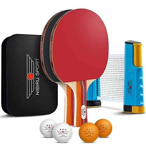 Nibiru Sport Ping Pong Set - Professional 2 Table Tennis Paddles, 4 Balls, Retractable Net with Posts and Storage Case - Pingpong Paddle and Game Table Accessories