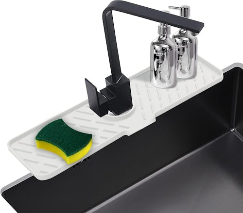To keep your sink looking neater, slip on this splash guard. It dries quickly to reduce the need to constantly wipe with a dishcloth as it automatically funnels any excess water back into the sink. Choose from four colors and two sizes in the listing.
