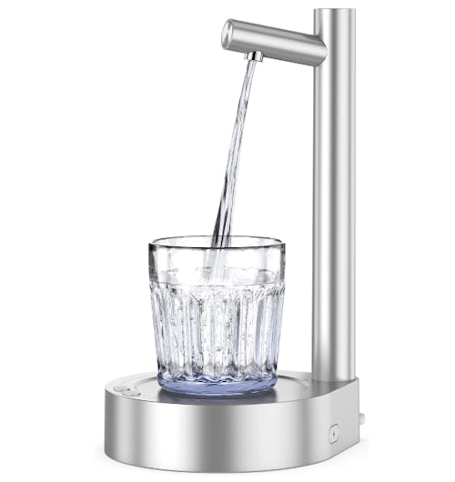 This desktop water dispenser can be popped onto any water jug from one to five gallons so that you can keep the heavy lifting to a minimum. You can choose between seven quantities to be dispensed and charge it via USB.