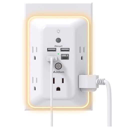 You’ll be able to keep all your devices in one spot with the help of this outlet extender. It has five three-prong outlets, three USB ports, and one USB-C port. All are protected from overheating, short circuiting, and more. And once dusk falls, it also acts as a night-light.