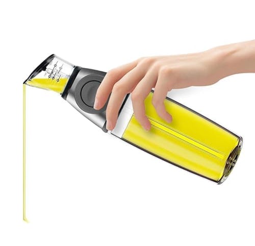 For full control when prepping your meal, you’ll want this oil dispenser. It has a no-drip spout that will close or open at your direction when pushing down on the silicone pump. It has a wide opening that can be refilled without making a mess and since it’s clear, you’ll always know when you’re running low.