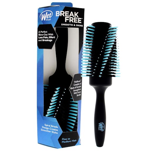 This round brush will come in handy when trying to create an at-home blowout. The nylon bristles are ultra soft to prevent damage but also resistant against heat. They’re also infused with biotin and keratin, which will coat your hair as you run it through.