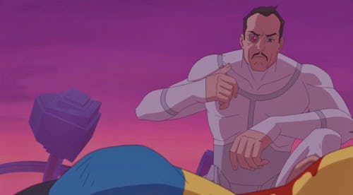 After Season 2 Episode 3 ended with an unexpected father-son reunion on a distant alien planet, Episode 4 ("It's Been a While") reveals what Omni-Man has been up to. After destroying most of Chicago while giving Mark the worst corporal punishment of his life, Nolan drifts into space, throwing himself a galactic pity party. But just as he’s about to fly headfirst into a black hole and end his own existence, he notices a Thraxan ship in peril and saves it. Soon, the people made him the ruler of their planet. He even starts a new family.