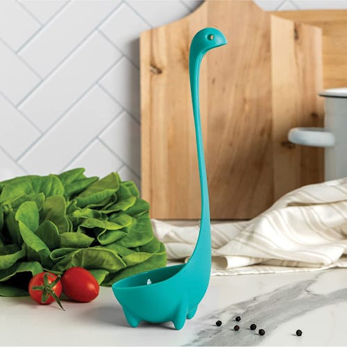Add a bit of personality to your kitchen utensil collection with this Loch Ness monster ladle. The perfect serving tool for soups and sauces, it stands upright in any pot, peeking out of the liquid. It’s available in four different styles and is heat resistant and dishwasher safe.
