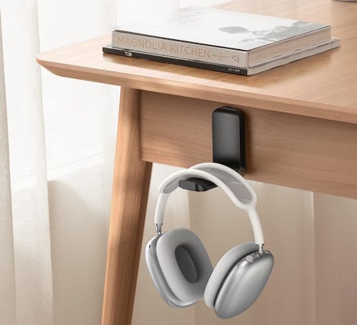This headset hanger offers a sleek solution for organizing your headphones, making sure they’re accessible whenever you need them. The hook folds out when you’re ready to hang your headphones, then folds back in and secures with a magnet, so it stays out of the way when you don’t need it. The adhesive backing makes installation hassle free.