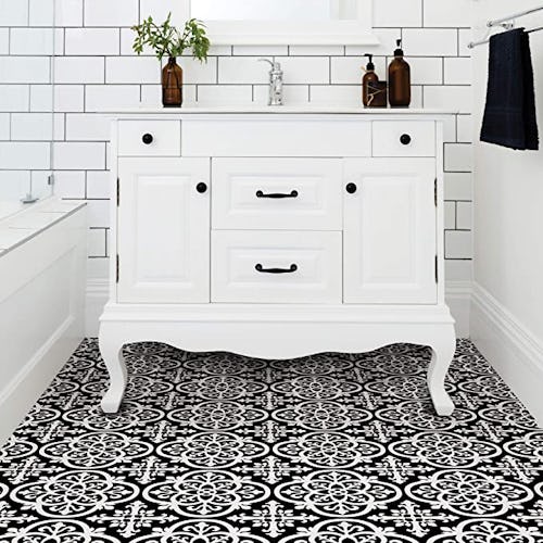 Transform the ancient floor you dream about replacing into one with eye-catching tile — without actually replacing the floor. You simply peel and stick these floor tiles over the floor you already have to create the illusion of tile. It’s easy to do and the results are not just beautiful, they are also water resistant and washable. Almost 7,000 people say, “Five stars!”
