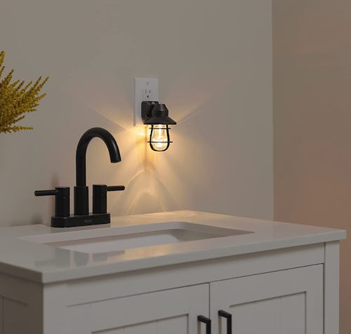 Plug this vintage, plug-in nightlight into an outlet in the bathroom, laundry room, stairs, or a dim hallway and solve your lighting problems while adding a bit of style. It automatically turns on when the room is dark and off again when it’s lit so you never have to hunt for a light switch. And the light it throws is gentle and warm so it won’t harsh your eyeballs when you get up in the night.