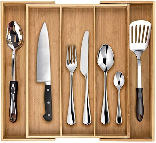 Dividing up your silverware with this convenient bamboo drawer organizer