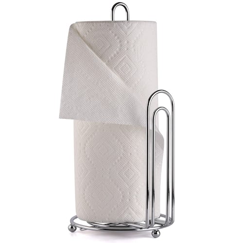 Set a roll of paper towels on the counter in this chrome paper towel holder and they go from clutter to useful accessory. The minimalist shape is entirely functional, with round feet and an arm that keeps that last towel from flapping about. You can grab it off the counter and set it on the table or coffee table for casual meals, too.