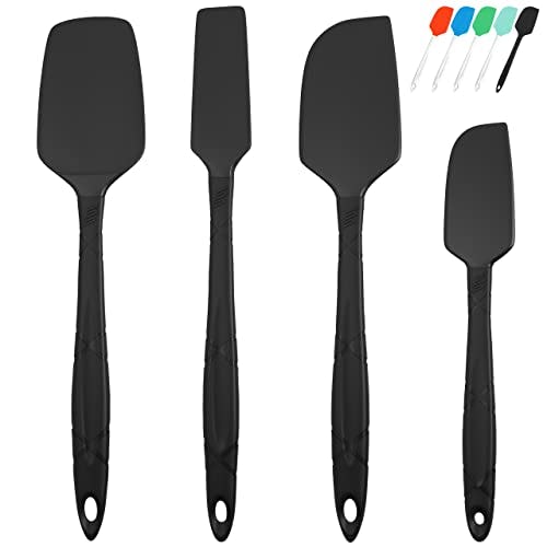M KITCHEN WORLD Silicone Spatula for Cooking 4 Pieces - Rubber Spatulas Heat Resistant, Baking Spatula Scraper, Spatula Set for Nonstick Cookware, Dishwasher Safe Kitchen Utensils for Mixing - Black