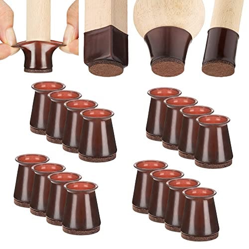 Aneaseit Chair Leg Floor Protectors - 1 1/8" x 16 pcs Dark Walnut - Felt Bottom Silicone Pads for Hardwood Floors & Furniture Feet - Rubber Caps for Chairs - Small