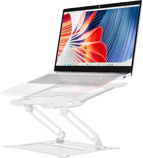 This laptop stand not only allows you to adjust the height of your screen, but the angle too. Move it from 0 to 90 degrees so that you have a clear view that’s at eye level to avoid neck strain. It also has anti-scratch pads to keep your device safe. Choose from several colors in the listing.