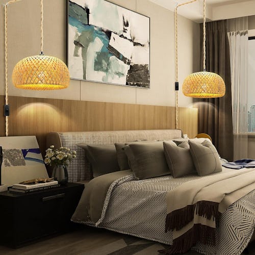 The design of this pendant light brings a cozy yet elegant vibe to your home. The gorgeous bamboo lampshade is connected to a 15-foot cord with an in-line on/off switch allows you to adjust the height of the fixture, and it plugs right into an outlet. The LED bulb can be changed between three color temperatures: white light, warm light, and daylight.