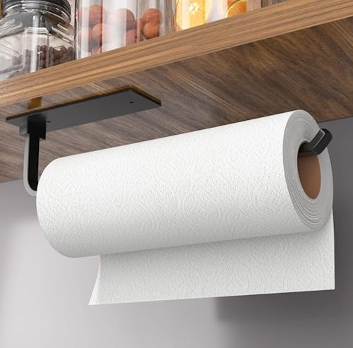Keep your paper towels off the countertop with his handy holder. It comes with a renter-friendly adhesive back, although you can also screw it in with the two-hole design. It’s made from super durable aluminum alloy, and it’s waterproof and rust-proof. The matte black coating adds a nice touch, and it measures just over 12 inches to fit any size roll.