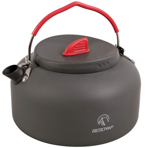 If camping, for you, involves recreating the inevitable scene in westerns where someone pours coffee made over a fire, you need this anodized aluminum camping kettle because it’s light enough to carry in a pack, is durable, has a short but smooth-pouring spout so you can do pour-over coffee. It even has a silicone-covered handle to keep your hands safe in the process.