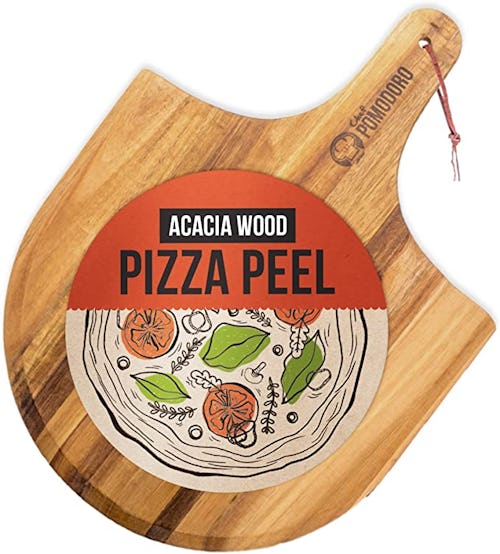 Getting a pizza or bread dough in and out of the oven is very difficult without a pizza peel. But a tool that big is difficult to store. You won’t want to store this wood pizza paddle, though. You will want to hang it on the wall so you can look at it. It’s made of a lovely piece of acacia wood, has an easy-to-hold handle, and is treated with mineral oil so your bread and pizza slide right off.