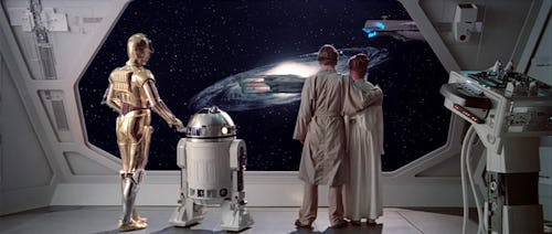 The Empire Strikes Back is a decidedly dark chapter of the Star Wars saga that divides and breaks its core trio. With Han frozen in carbonite and Luke reeling from the revelation that Darth Vader is his father, the film needed to end on a more upbeat moment. Thompson calls it the “Go Rescue Han” moment, a beat that assures the audience there’s still hope for their heroes.