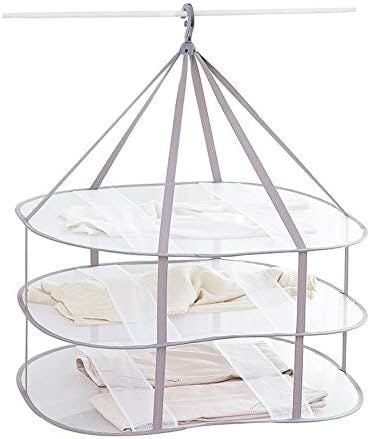 You don’t have to give up any floor space with this hanging drying rack. Each of the three tiers is made of a breathable polyester mesh that allows your clothes to dry from both sides to speed up the process. And it has a stainless steel hanger that can hold up to 10 pounds. Plus, it collapses flat when not in use.