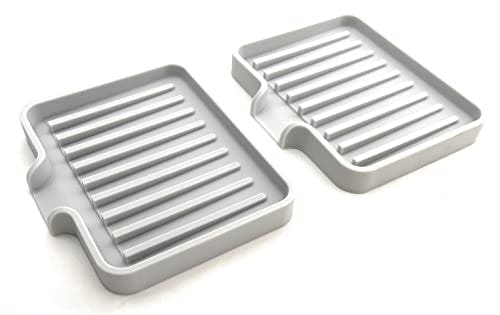 Happitasa Silicone Soap Dish Tray and Sponge Holder with Drain Chute, Pack of 2 (LIGHT GREY, 5.2"X4")