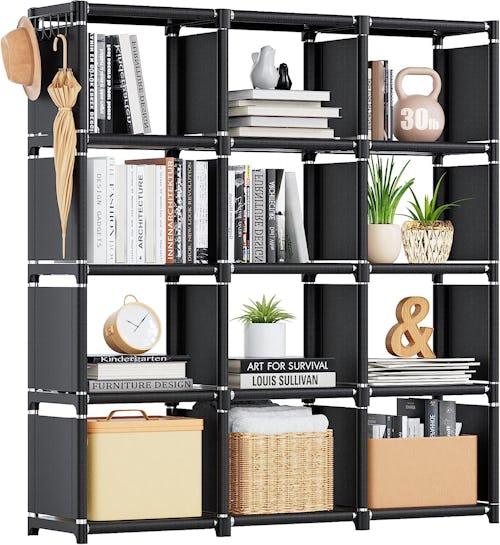 Using the 12 cube shelves in this pack, you can create any kind of organizer that you need. Each square is made of a waterproof fabric that can hold up to 30 pounds. Plus, they’re simple to assemble. One reviewer wrote, “The thing is sturdy. Comes with a small wood mallet.[...] Super easy to put together. [...] It's super lightweight, the whole thing came in a small box weighing only maybe 5 lbs. But it does its job!”