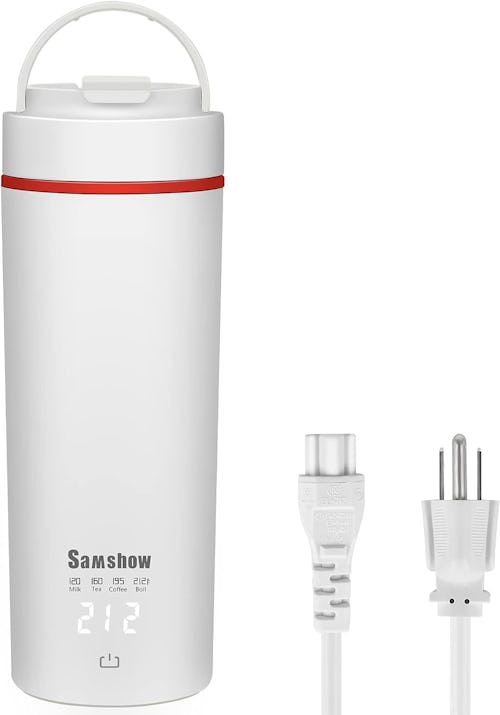 The size of a tumbler, this portable electric kettle with a stainless steel interior is easy to take on the go so you can have fresh tea or pour overs whenever you please. The sealing ring on the lid prevents leaks and the steam outlet on the top reduces pressure. It can reach up to 212 degrees Fahrenheit in just five to seven minutes.