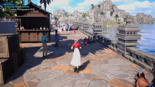 To complete the Cactuar Caper, you must find four Cactuar drawings scattered throughout Costa del Sol and take pictures of them. They aren’t just your typical green Cactuars, however. These are special pink ones outfitted in summer beach attire! It’s a simple objective but don’t spend more time than you have searching for them! We’ve saved you the frustration by gathering the four locations below.