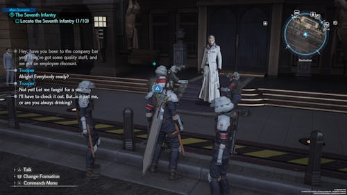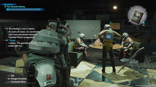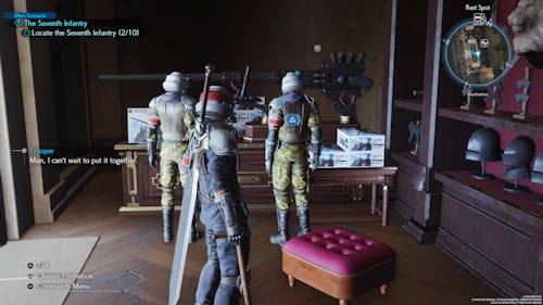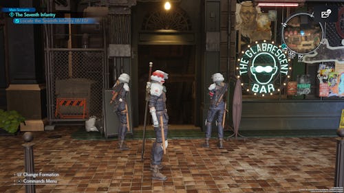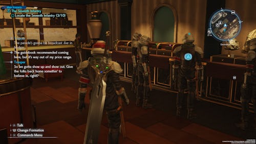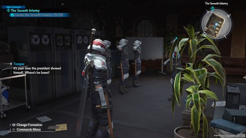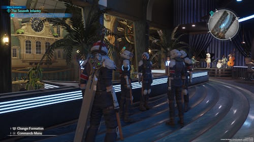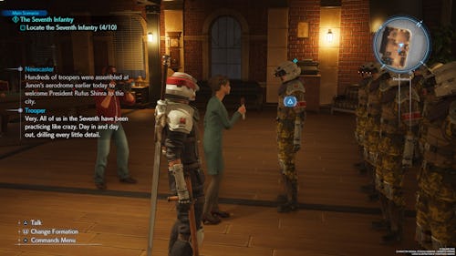 Your next group of soldiers can be found in the Glabrescent Bar. You’ll see Rude standing right outside of it. When approaching the bar, Rude will go inside it. Follow him into the bar and a cutscene will occur. Afterwards, they will automatically join you.