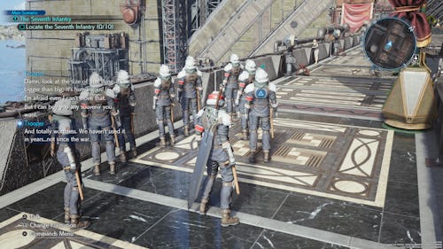 In Final Fantasy VII Rebirth, Cloud is tasked with gathering the Seventh Infantry to practice marching drills. It’s a fun little detour in Chapter 4 with 10 troops scattered aboard the Aerodrome in Junon. You only have to gather five of the 10 to progress to the next part of the story, but if you find all 10 and talk to them, you also unlock the “7th, Assemble!” trophy, which is excellent if you’re a bit of a completionist. Finding all 10 also gives you more soldiers to make the upcoming mini-game much easier.