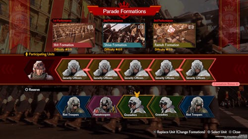 As a bonus, in order to make the upcoming mini-game easier, have all five Security Officer units participate with Cloud in his parade formation. They will make all three performances have a 1-star difficulty.