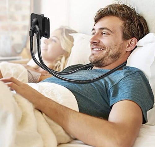 This flexible phone holder is lightweight enough to comfortably hang around your neck yet strong enough to stand on its own in any position you desire. The gooseneck can be slid underneath your mattress or propped up on a table. The options are endless but you’ll be hands-free with them all.