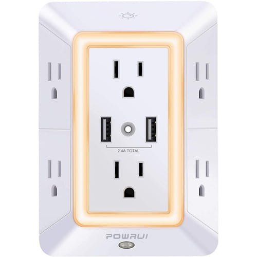 You can power all your devices and appliances in one spot with this outlet extender without using a clunky extension cord. It has six three-prong outlets and two USB-A ports — all of which are equipped with surge protection. The front also has a dusk-to-dawn sensor to automatically turn on and off its built-in night-light. You can adjust its brightness by simply tapping.