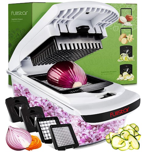 Amazon reviewers have been raving about this vegetable chopper — it has a 4.5-star overall rating after more than 104,000 reviews. It comes with four different blades so that you can dice and create spirals in different sizes and thicknesses, and it works with both fruit and vegetables so you can meal prep quickly.