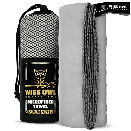 Wise Owl Outfitters Camping Towels - Quick Dry Travel Towel for Camping, Sports, Swimming, Yoga, Hiking and Backpacking, Light Grey