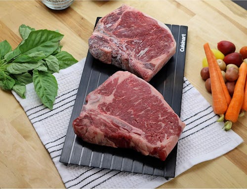 There is no longer a need to spend hours thawing frozen meat in the fridge before you plan to throw it on the grill. This nonstick defrosting tray brings them to room temperature in half the amount of time thanks to its thermal conductive aluminum material.