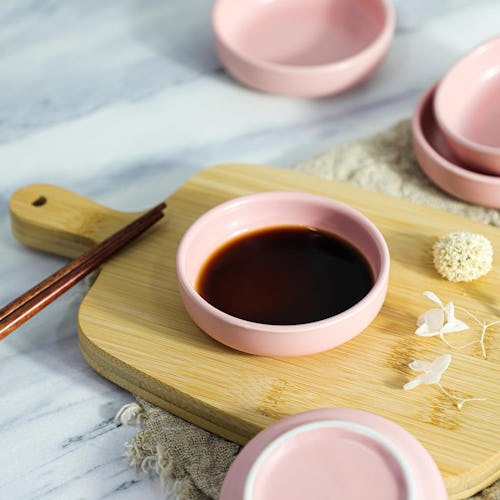 These sauce bowls will add a pop of color to your meals; they come in options like mocha, emerald, and matte blue in the listing. They’re the perfect size for side dishes, dips, and condiments, and they won’t take up too much space on the dinner table. The set comes with four pieces.