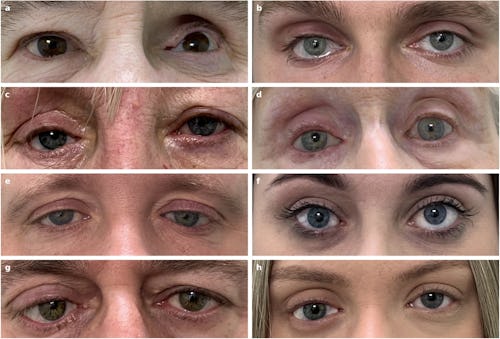 But the moment of truth: did the new artificial peepers look lifelike? As the color was matched to the existing eye right down to the whiteness of the sclera and the color, size, and structure of the iris, fake and real eyes were nearly distinguishable. (You can be the judge of that yourself with the results down below.) The eight participants with snugly fitting prosthetics ranked the cosmetic appearance of their artificial eye as either excellent or very good (the scale being from unacceptable to excellent); overall facial appearance was rated very good, with a four judging it as excellent.