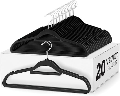 This 20-pack of sleek velvet hangers that maintain the shape of your clothes