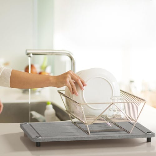 An aesthetically pleasing alternative to clunky dish-drying trays, this quick-drying stone mat keeps your counters clean and free of water pooling. Made with diatomaceous earth and recycled paper, it’s eco-friendly and absorbs water instantly, unlike other models made with silicone, plastic, or cloth. It’s nonslip, with four stainless steel legs to elevate it — choose from two styles: gray and marble.
