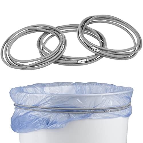 Trash Can Bands Set of 3 - Grey with Metal Connector, Holds 13 to 33 Gallon Trash Bag - Durable Elastic Garbage Bag Band for Indoor and Outdoor Use - Waste Basket Rubber Bands For Round & Square Bins