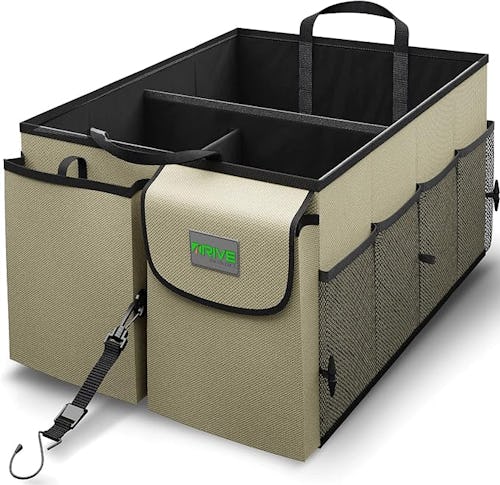 With a 4.7-star rating after 69,000-plus reviews, this vehicle organizer can be resized to fit in nearly any space (whether that’s the trunk, floor, or on a seat). It has various compartments and pockets to stay orderly and it’s waterproof by design. Utilize the tie-down strap system to ensure it doesn’t slide around during drives.