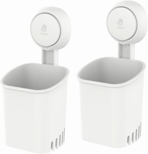 Stick this pair of toothbrush holders on smooth, nonporous surfaces in your bathroom — think: glass, mirror, tile, and more. Drainage holes in the bottom ensure that water doesn’t pool and the holders can be taken down and reinstalled in a new spot with ease. Each one can hold up to 11 pounds so they can be used in other rooms in the house, too.