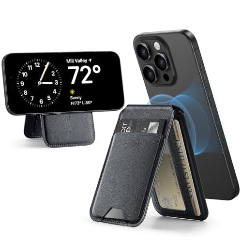 ESR Magnetic Wallet (HaloLock), Compatible with MagSafe Wallet, for iPhone Wallet with Adjustable Stand, for iPhone 15/14/13/12 Series, Not for iPhone 13/12 mini, 3 Card Holder, Vegan Leather, Black