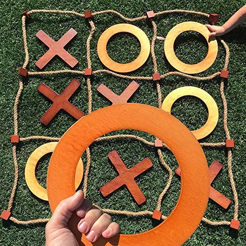 SWOOC Games - Giant Wooden Tic Tac Toe Game (All Weather) | 3ft x 3ft | Big Wood X & O Pieces with Rope Game Board | Large Outdoor Tic Tac Toss Across Yard Game for The Whole Family