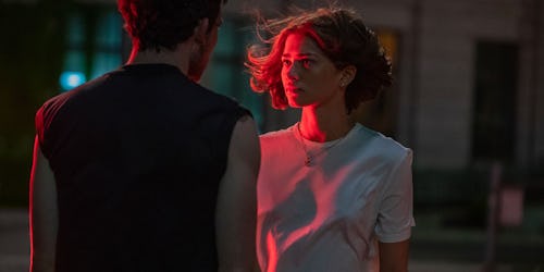 It seems like this wouldn’t apply to a movie that doesn’t have an actual sex scene. We just see the buildup to one, and the aftermath of another, Guadagnino’s camera cutting away right at the, ahem, climax. The steamy central threesome between Tasha, Patrick, and Art, around which much hoopla has been made, is essentially just a makeout session, one that turns into a supercharged show of exhibitionism when Tasha essentially presses Patrick and Art’s faces together and becomes the gleeful voyeur of their uninhibited passion.