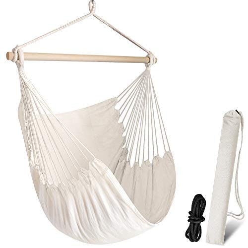 You’ll want to be in your backyard every day once you have this swing chair tempting you with its comfort. It’s made of soft yet durable cotton that can hold up to 330 pounds and is easy to snuggle up in. It comes in a few colors in the listing.