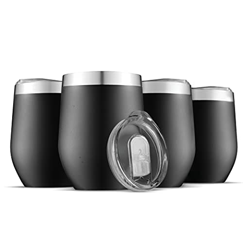 Triple Insulated Wine Tumbler With Lid (4 Pack) 12oz Stainless Steel Wine Glass Set- Insulated Tumblers Keep Drinks Hot & Cold for Outdoors, Beach, Picnics- Unbreakable Wine Glasses With BPA Free Lids