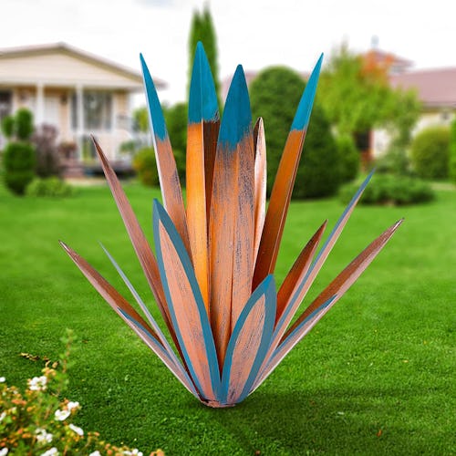 This unique metal sculpture will look like a agave plant growing straight out of your garden bed (it’s 16.3 inches tall). You can buy it in pairs or even packs of three in the listing so that you can cover any empty corner or space that needs a bit more color. It also comes in green.