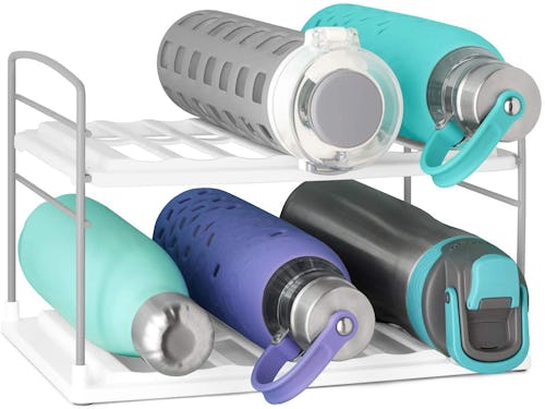 If your water bottle collection is currently cluttering the kitchen, set this water bottle organizer in a cupboard and give every bottle a place to live. The bottles won’t roll around because the shelving has concave resting spots for each one. And the shelf will stay put because it has rubber feet. There are four sizes.